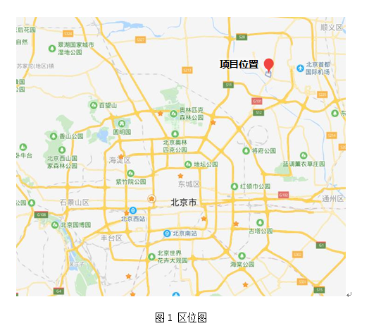 北京新國(guó)展二、三期項(xiàng)目位于北京市區(qū)的東北部,順義新城后沙峪組團(tuán)東南部,距市區(qū)、城市副中心均約20公里(見(jiàn)圖1)。