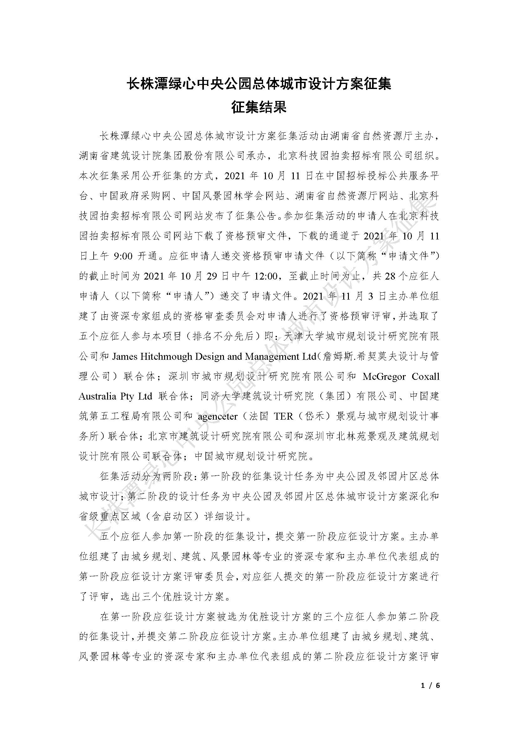 長株潭綠心中央公園總體城市設計方案征集 征集結果